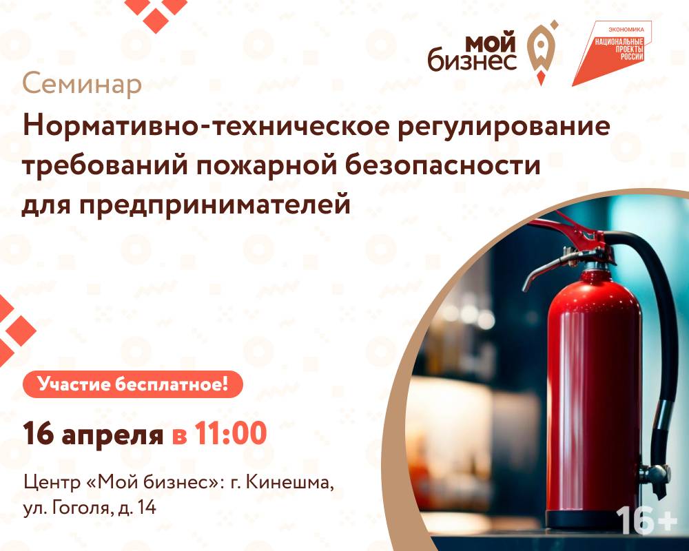 Центр «Мой бизнес» приглашает предпринимателей на бесплатный семинар: «Нормативно-техническое регулирование требований пожарной безопасности для предпринимателей»