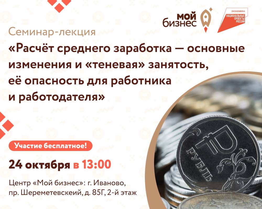 24.10.2025 13:00 Расчет среднего заработка: основные изменения и "теневая" занятость — опасность для работника и работодателя «МФЦ для бизнеса» приглашает предпринимателей региона на семинар-лекцию с участием представителей Государственной инспекции труда на тему: Расчет среднего заработка: основные изменения и "теневая" занятость — опасность для работника и работодателя.