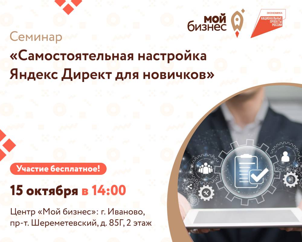 15.10.2025 14:00 Центр «Мой бизнес» приглашает на бесплатный семинар: «Самостоятельная настройка Яндекс Директ для новичков» Вы хотите запустить рекламу в Яндекс Директ, но боитесь сложностей и пустой траты бюджета? Этот семинар — ваш шанс сделать всё с пониманием, как работает продукт, а не просто нажать «Запуск»!