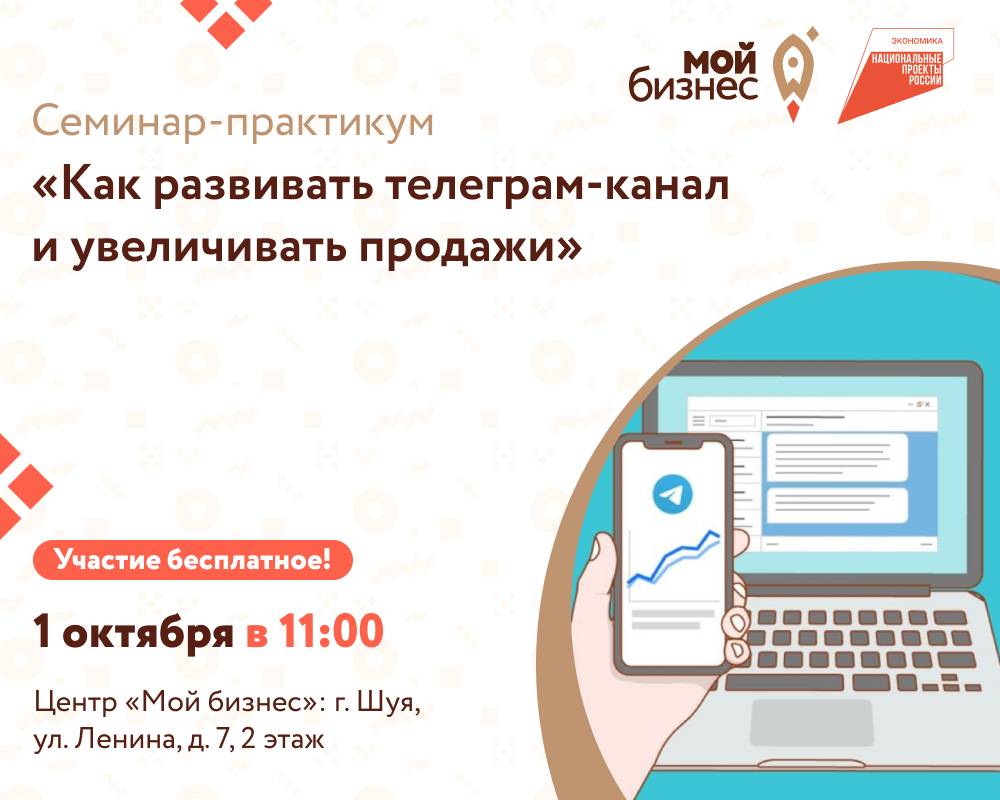 01.10.2025 11:00 Центр «Мой бизнес» приглашает предпринимателей на бесплатный семинар-практикум: «Как развивать телеграм-канал и увеличивать продажи». Для кого этот семинар? Для владельцев телеграм - каналов, которые хотят проработать новую концепцию, сделать канал вовлекающим и продающим.